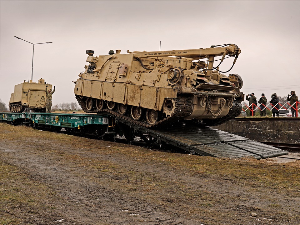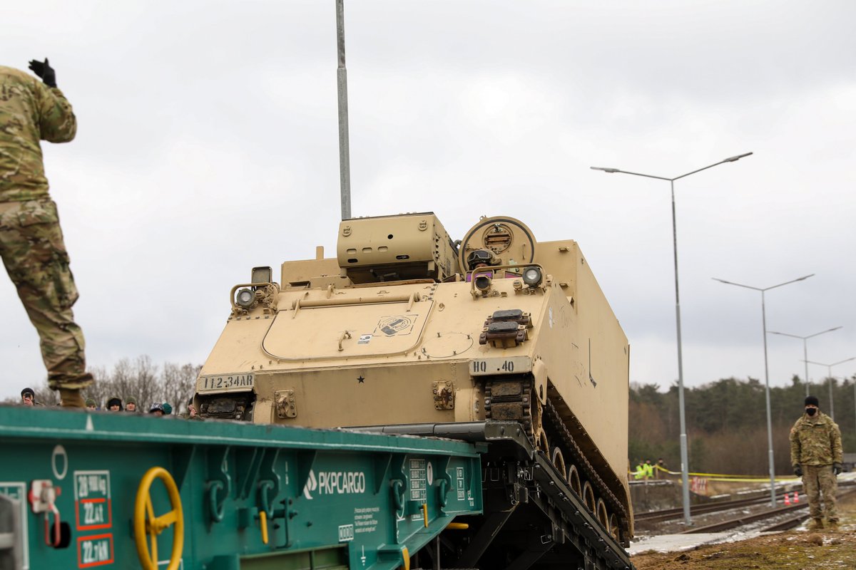 2nd Battalion, 34th Armored Regiment, 1st ABCT, 1st Infantry Division, conducted interoperability test with RM 70 Mobile Railway Ramp and Heavy Equipment Transporter Jelcz 882.62 at a railhead near Drawsko Pomorskie, Poland, Feb. 1, 2022. #MilitaryMobilitypic.twitter.com/2kzVscM2Az