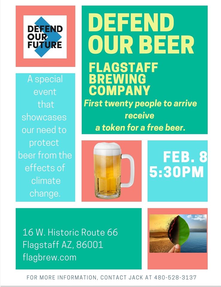 @FlagstaffBeer for#DefendOurBeer this Saturday, Feb. 8, at 5:30 pm! Learn more about how the#ClimateCrisis impacts one of our favorite drinks and what you can do to#ActOnClimate in your community!pic.twitter.com/78SUOxnzxK