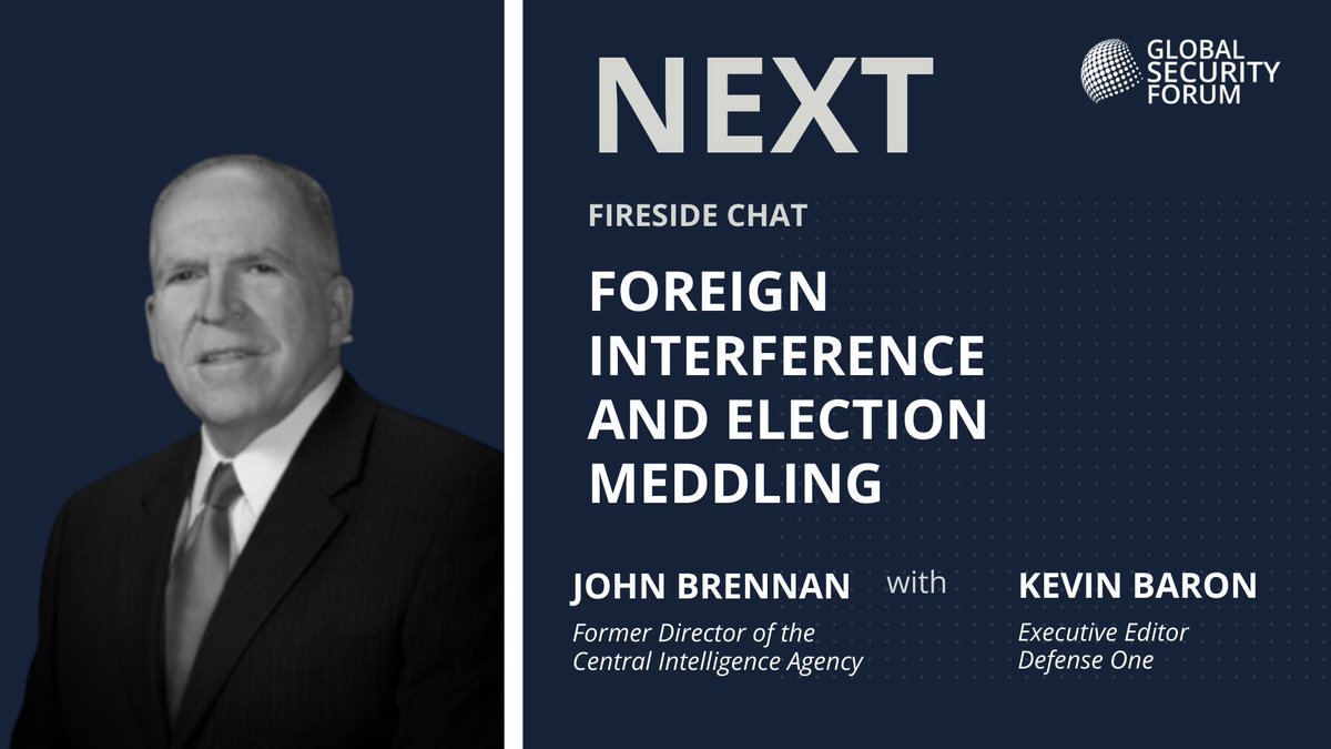 @JohnBrennan will join@DefenseBaron for a discussion on “Foreign Interference and Election Meddling”#GSF2020pic.twitter.com/krQzKTxHZ7