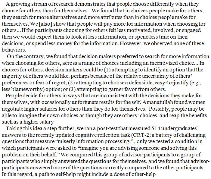I subjectively agree. Sometimes, for myself I feel free - accepting the risk - to make emotional and impulsive decisions. For someone else I would not do that. I'd always try to be as rational and informed as I can.