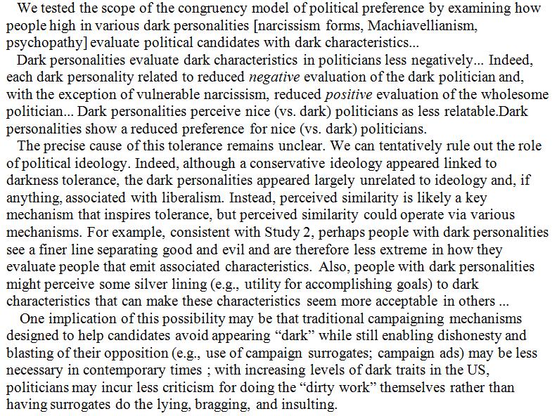 Individuals with "dark" personalities find dark politicians more relatable and fit for office. https://www.sciencedirect.com/science/article/pii/S0092656618300606 …pic.twitter.com/lHF1wNYa0D