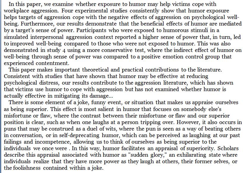 Laughing away humiliation: Humor helps victims of aggression to restore psychological well-being, by bolstering a sense of power. https://link.springer.com/article/10.1007/s10869-018-9548-7 …pic.twitter.com/ibFf8vPk8d