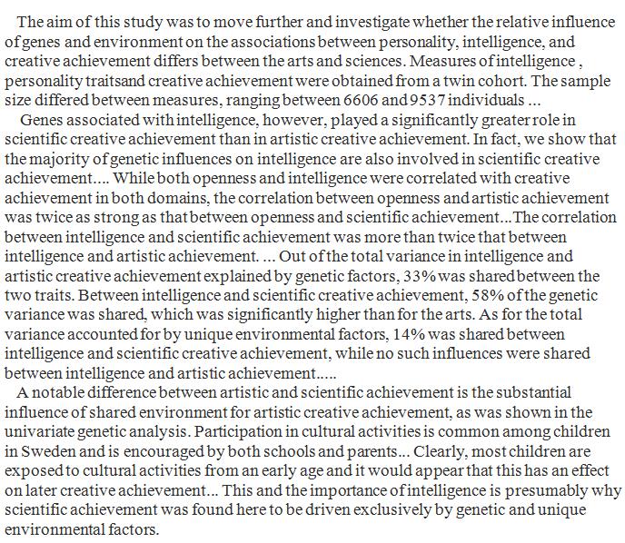 Genes associated with intelligence played a greater role in scientific creative achievement than in artistic creative achievement. https://www.sciencedirect.com/science/article/pii/S0160289618300266 …pic.twitter.com/s7Jb99islw