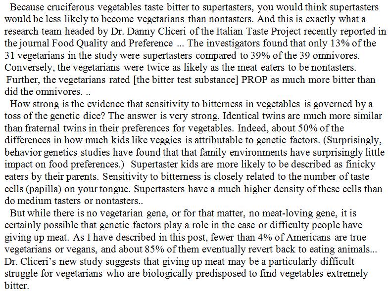 Tragedy of the tongue: Supertasters, who tend to dislike the bitterness of vegetables, have greater problems becoming and staying vegetarians. https://www.psychologytoday.com/intl/blog/animals-and-us/201806/what-s-the-deal-vegetarians-who-hate-vegetables …pic.twitter.com/0k6nSCTM0k