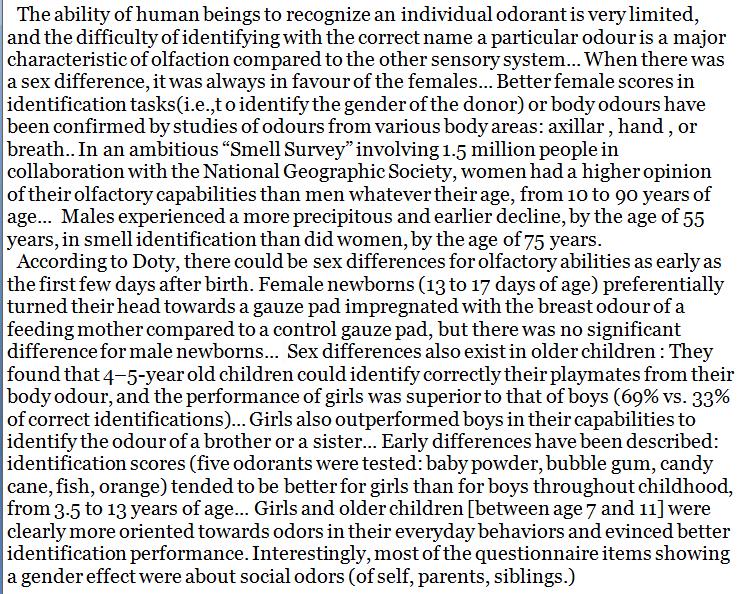 From early life on, girls had a keener sense of smell than boys. http://journals.sagepub.com/doi/pdf/10.1080/713932757 … http://journals.sagepub.com/doi/full/10.1177/0301006616688224 … https://link.springer.com/article/10.1007/s12078-008-9020-6 …pic.twitter.com/tjol2qAjME
