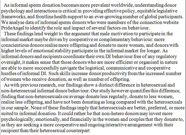 Men high on conscientious are more efficient sperm donors and achieve a higher number of offspring, while gay men score lower. https://eprints.qut.edu.au/118622/2/Stephen_Whyte_Thesis.pdf …pic.twitter.com/45Jw53F71v