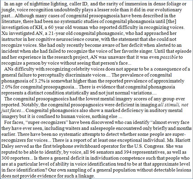 In analogy to the better known face blindness, some individuals suffer from "congenital phonagnosia", the inability to recognize people by their voices. https://www.sciencedirect.com/science/article/pii/S0028393218300423 …pic.twitter.com/k6PytYAm3a