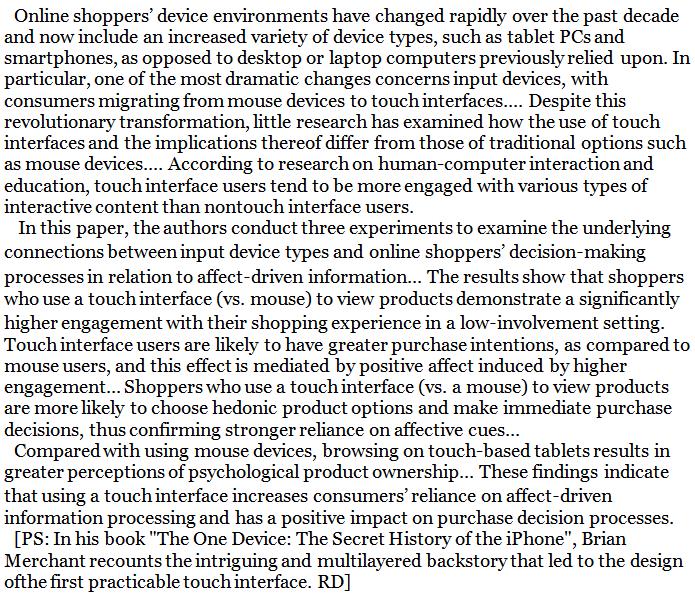 Touch-n-Buy: Online shoppers who use a touch interface develop a more affectionate relationship with the displayed merchandise. https://onlinelibrary.wiley.com/doi/full/10.1002/mar.21135 …pic.twitter.com/zdTO02XG5l
