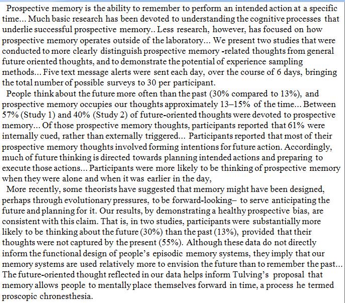 People think about the future more often than the past, and a large part of the future-oriented thought is prospective memory - people reminding themselves to do things. https://link.springer.com/article/10.3758/s13421-018-0849-x …pic.twitter.com/C45nD0oXQR
