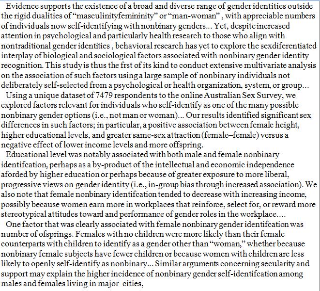Taller height and lower income were associated, among others, with a greater probability of women self-identifying as a non binary gender. https://link.springer.com/article/10.1007/s10508-018-1307-3 …pic.twitter.com/qfdPHt7qEQ