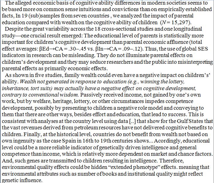 "Parents’ Education Is More Important Than Their Wealth in Shaping Their Children’s Intelligence." Windfall wealth may even be detrimental. http://journals.sagepub.com/doi/abs/10.1177/0162353218799481 …pic.twitter.com/zk0MsZe4Zg