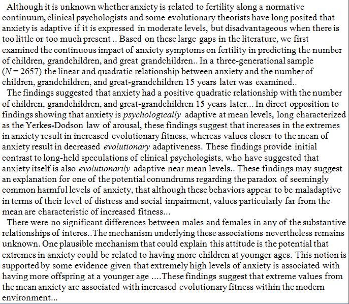 I would lay substantial odds that high anxiety women are *way* more likely than other members of their sex to have children with multiple partners (in the modern environment..), so they're diversified to boot!