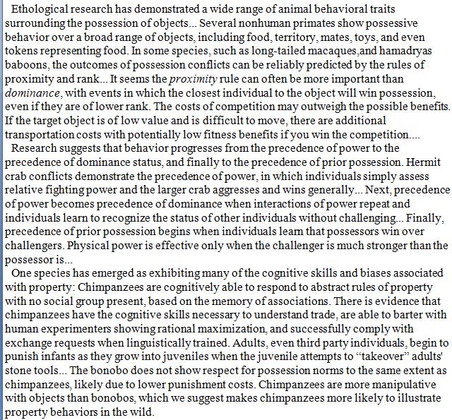 Confundes el instinto de supervivencia con un supuesto y nuevo instinto-el de la propiedad. Cuando lo propio sería la necesidad de poseer(la mejor cueva,las mejores mujeres,los mejores instrumentos,las mejores armas, etc)-"la propiedad comunal" es el principio de la civilización.