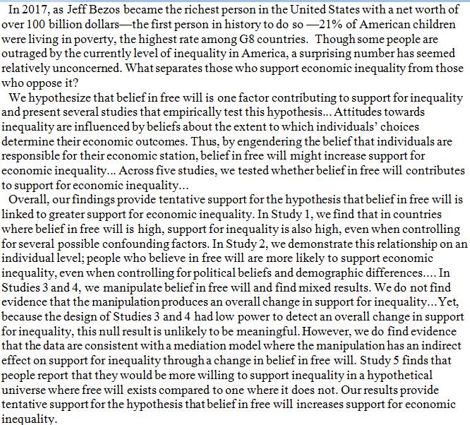 Of course it doesn’t follow that the millions of people out there who believe in predestination or an immanent deity are less likely to accept economic inequality, but they do tend to live in relative poverty