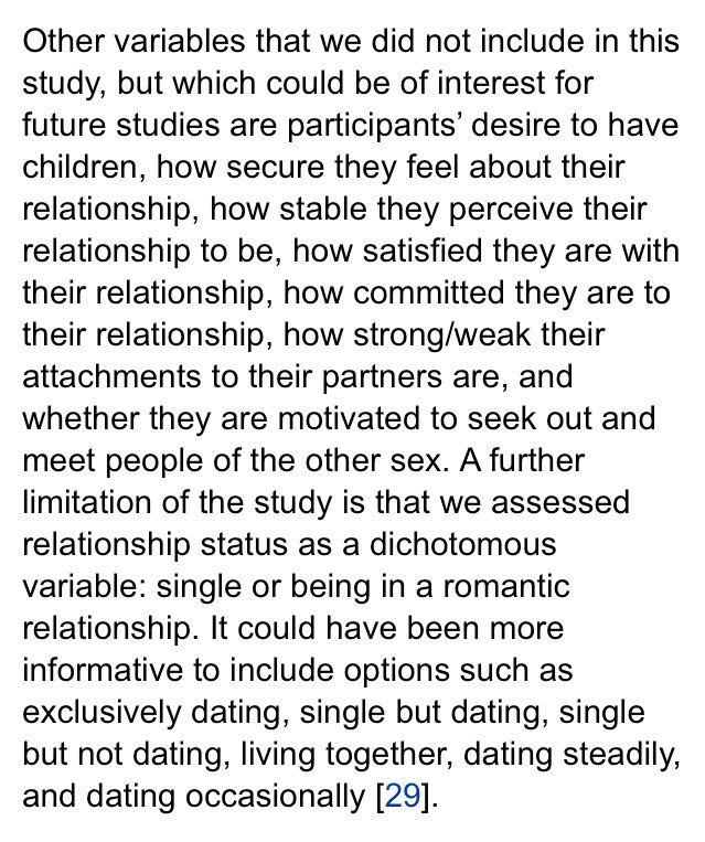 They didn't really control for anything for men "in relationships": were they with their partner for a month or 3 years? That's important to know. Without knowing these variables (listed in the picture), their hypothesis for men "in relationships" is actually very immature...pic.twitter.com/Q73J6FAVLv
