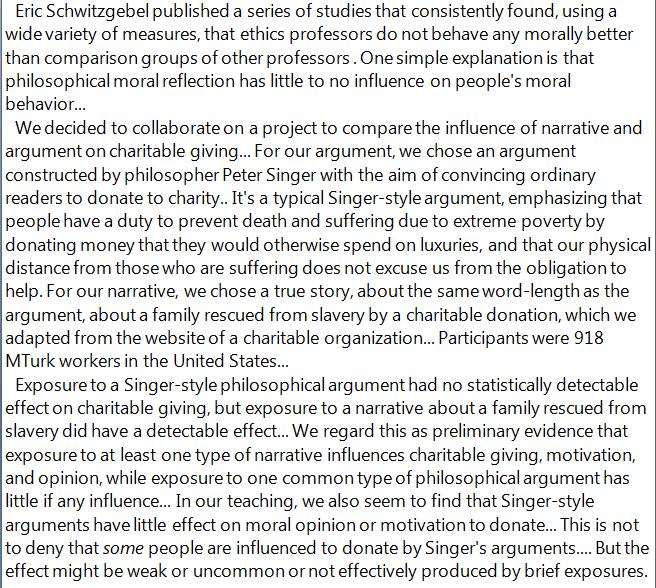 Ethical arguments fail to move people to act more charitably, contrary to touching narratives. http://schwitzsplinters.blogspot.com/2018/11/narrative-but-not-philosophical.html …pic.twitter.com/gRfbdjSo5P