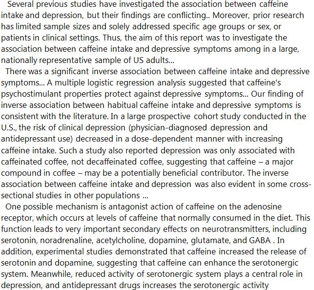 Espressos as antidepressants? Higher caffeine intake is linked to lower risk of depressive symptoms. https://www.sciencedirect.com/science/article/pii/S0165178118300064 …pic.twitter.com/E1CudSbUFY