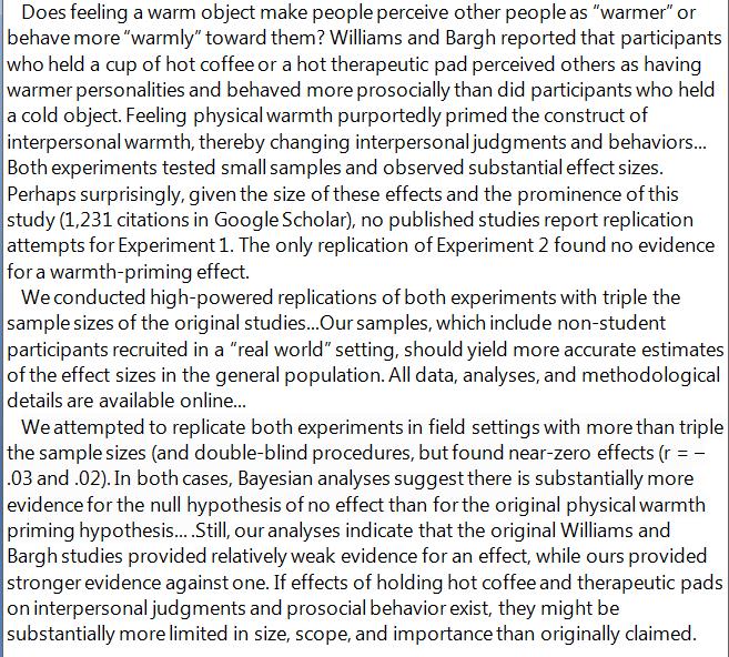 Warm hands, warm heart? Another widely touted psychology classic bites the dust in high-powered failed replication attempt. https://psyarxiv.com/mvn9b pic.twitter.com/hGZ7Q2ez83