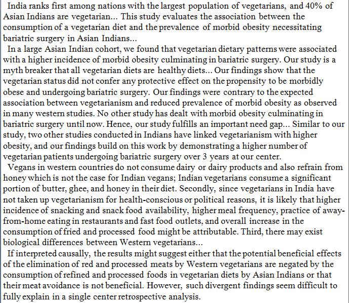not surprising at all.. polished rice/wheat + outsized restaurant portions +fat & sugar in veg food you eat outside (unless u r really picky) ..add to that Asian Indians are likely more sedentary in lifestyle.. follow folks who go to ISKCON temples...best ex of this trend :)