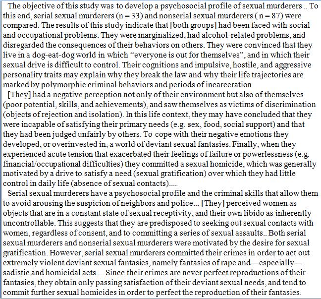 In real life, serial sexual murderers and nonserial sexual murderers are wretched figures, who see themselves as victims. https://www.sciencedirect.com/science/article/pii/S0047235218304288 …pic.twitter.com/B0dOVEiz1F