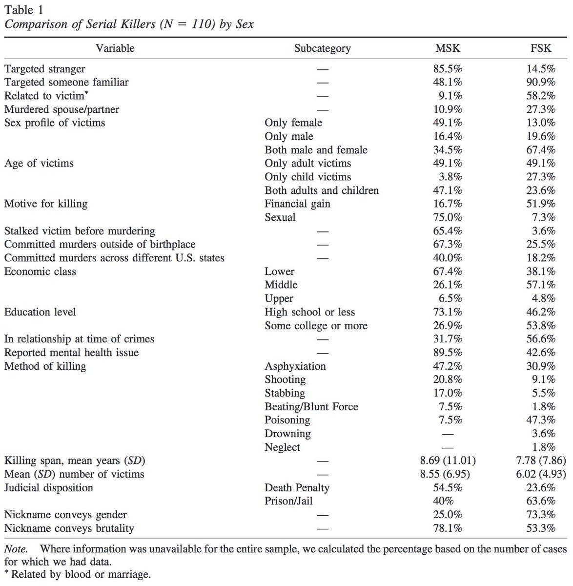 And a good break down of serial killer profiles by sex - again with stark differenceshttps://twitter.com/imhardcory/status/1131860364679884801?s=21 …
