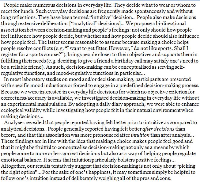 In general, people felt better after making decisions. particularly intuitive decisions. https://www.tandfonline.com/doi/full/10.1080/02699931.2019.1570914 …pic.twitter.com/A8qtfZA1L6