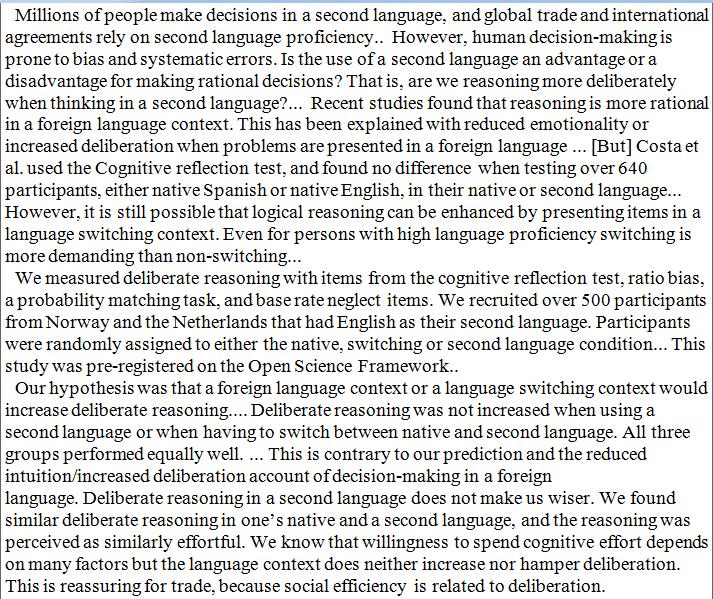 "Deliberate reasoning in a second language does not make us wiser." https://journals.plos.org/plosone/article?id=10.1371/journal.pone.0211428 …pic.twitter.com/vI0PN6d4yP