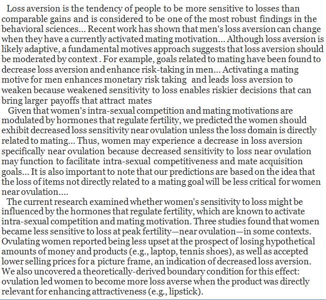Lipsticks become more precious to women on their fertile days, causing greater loss aversion. The ovulatory shift approach, though thoroughly discredited recently, simply will not go away. https://www.sciencedirect.com/science/article/abs/pii/S014829631930133X …pic.twitter.com/8GIAsZjSso