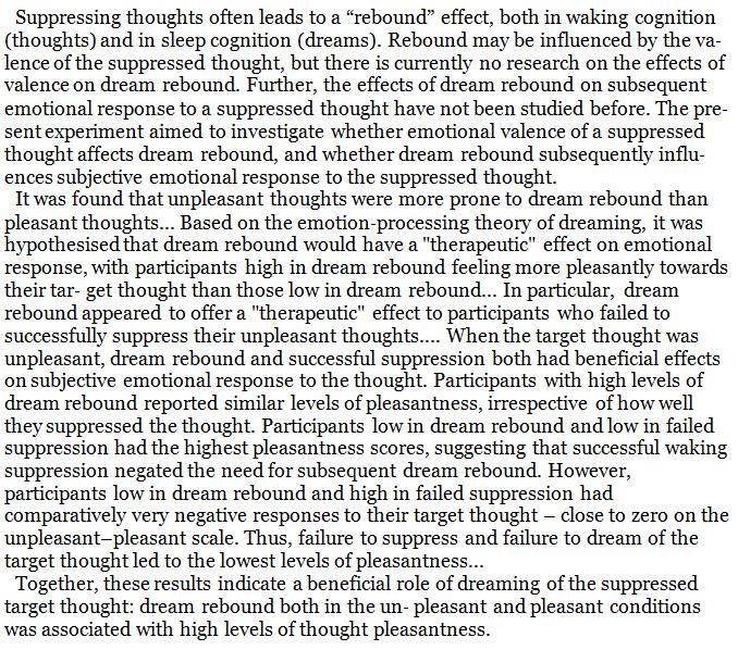 The return of the repressed: Suppressed unpleasant thoughts were more prone to rebound during dream sleep than pleasant ones. and these dreams had a cathartic effect. https://onlinelibrary.wiley.com/doi/10.1111/jsr.12827 …pic.twitter.com/UrkKmflla9