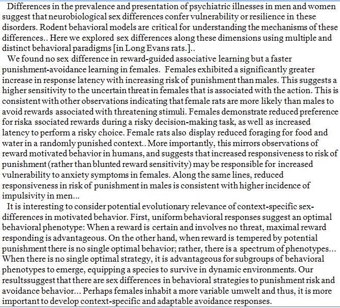 Female rats behaved pretty much the same as males during reward-guided associative learning, but showed faster punishment-avoidance learning, echoing similar patterns in humans. https://www.biorxiv.org/content/10.1101/581546v1 …pic.twitter.com/socUAmQHis