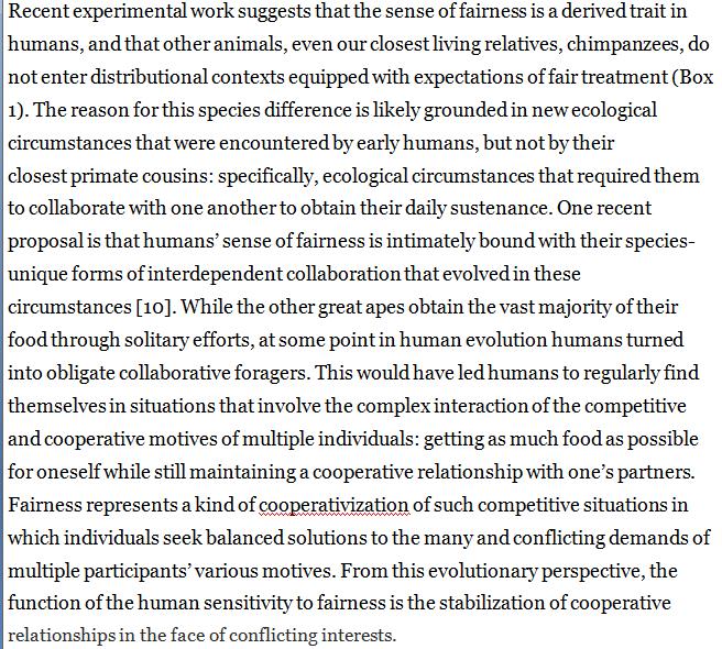 The conditions that led to the evolution of a sense of fairness probably occurred only in humans.pic.twitter.com/lZUwjAjNFB