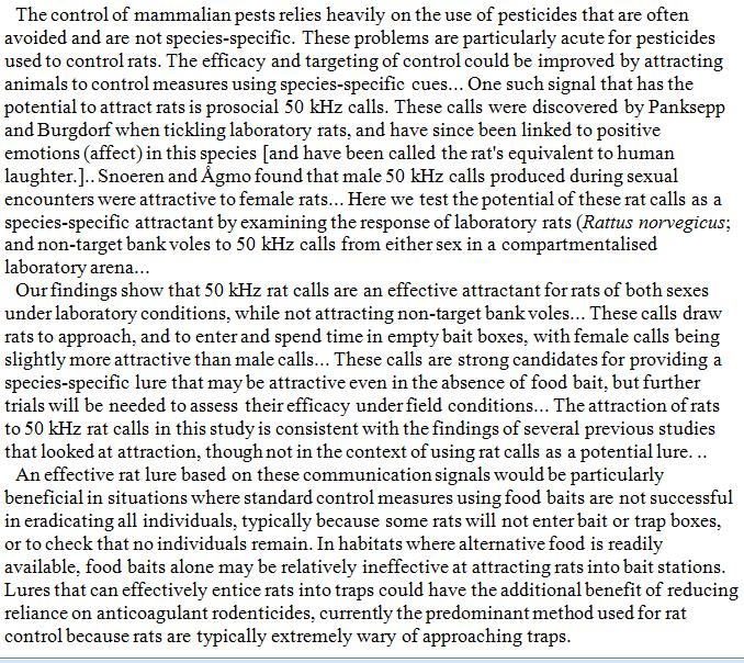 Pied Piper 2.0: Rats' ultrasonic calls, which have been compared to human laughter, might serve as a magic lure in pest control. https://journals.plos.org/plosone/article?id=10.1371/journal.pone.0211601 …pic.twitter.com/a00VOflw3J