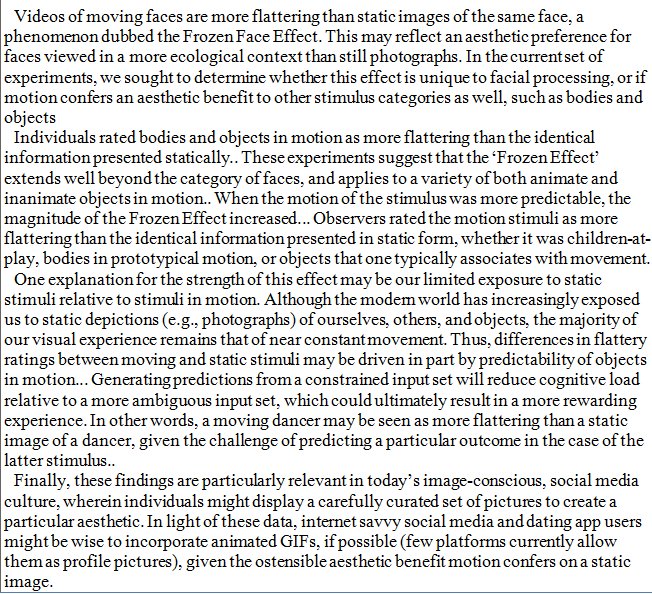 Faces, bodies, children-at-play and other objects in motion were rated as more flattering than still images of the same features. https://journals.plos.org/plosone/article?id=10.1371/journal.pone.0215813 …pic.twitter.com/nvnPuzjUPO