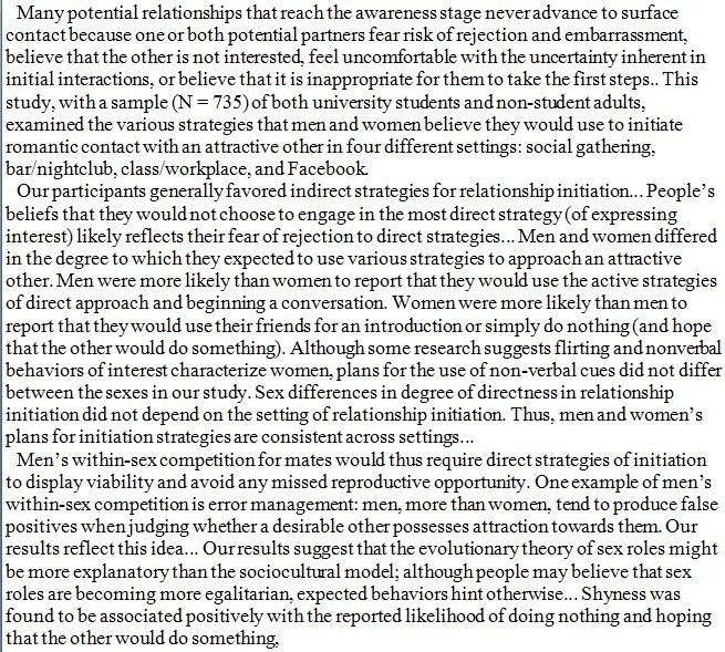 Vague abstract; Someone with access please post the numbers from the study. No surprise males take more active direct approach; ? is what effects has social engineering had on evolutionary historical roles?