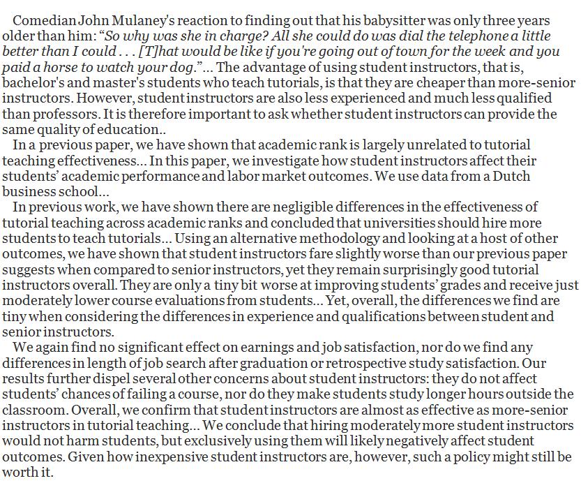 Can tertiary educators do much better? Peak, by Ericsson and Pool, argued that, yes, it could be done much better. Jump to the "implications for education" heading of my review for a summaryhttps://twicefire.com/peak/