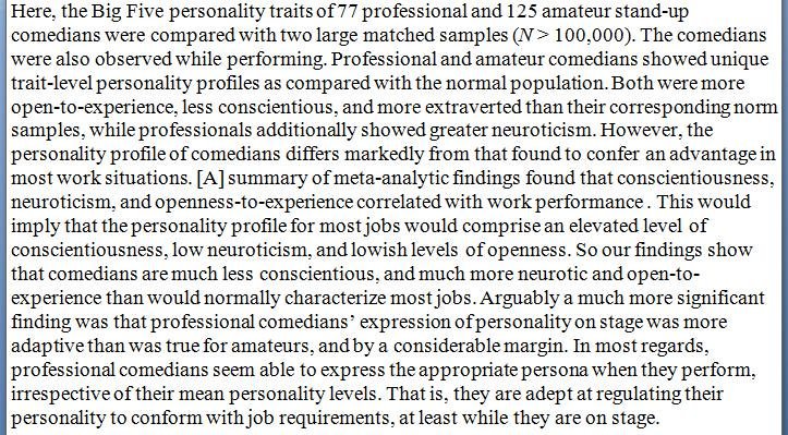 I'm high in openness, low in conscientiousness, high in neuroticism and low in extraversion. I'm also not even funny. I'm pretty much screwed.