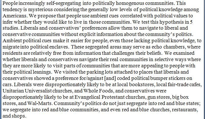 Could it be that people self segregate based upon values and politics is simply a proxy for this values-based segregation?