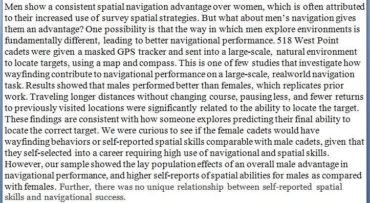 Male West Point cadets beat their female peers in navigating a large-scale, natural environment to locate hidden targets. Here is how they did it. https://link.springer.com/article/10.3758/s13423-019-01659-w …pic.twitter.com/xH2a2w4aYl