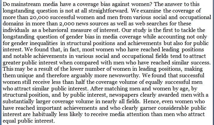 "Successful women still receive less than half the media coverage volume of equally successful men who attract similar public interest." https://www.sociologicalscience.com/download/vol-6/september/SocSci_v6_526to550.pdf …pic.twitter.com/cU6sarhZfV