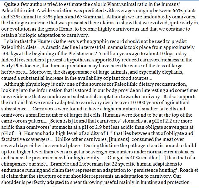 meat was so hard to come by & modern people eat so much meat that a vegetarian is likely closer to our ancestral die
