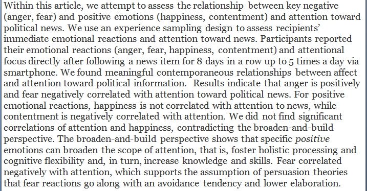 The only emotion linked to heightened attention to political news was anger. https://journals.sagepub.com/doi/full/10.1177/0093650219872392 …pic.twitter.com/wysGF1VuKk