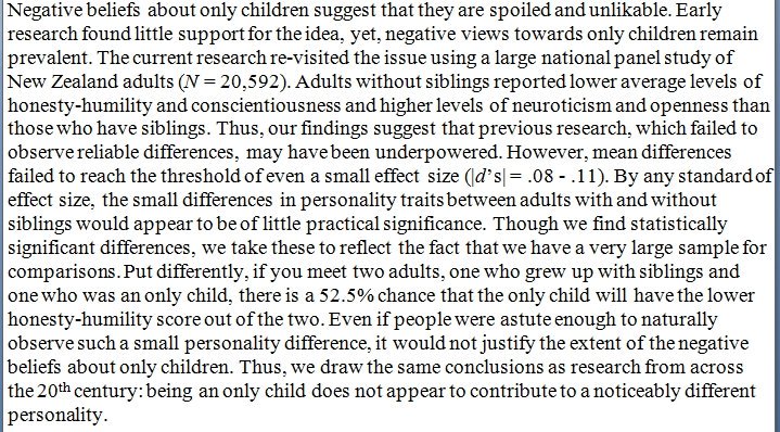 Large-scale study: Only children differ in their personality from others, but the effect is too small to have any practical significance. https://www.sciencedirect.com/science/article/abs/pii/S0092656619300893 …pic.twitter.com/amErshhwBp