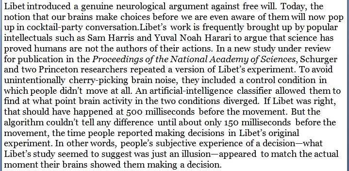 The brain signal that occurred before people became aware of their own choice in the Libet experiment does not even emerge when decisions are deliberate and purposeful. https://www.biorxiv.org/content/10.1101/097626v7 …pic.twitter.com/tMOOhfaCC4