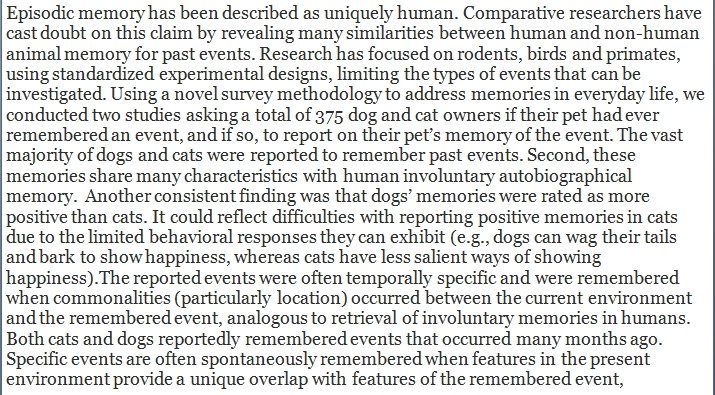 The vast majority of dogs and cats could remember past events, but dogs’ memories were more positive than cats'. Say their owners. https://www.sciencedirect.com/science/article/abs/pii/S0168159119301455 …pic.twitter.com/oLYR5gwRth