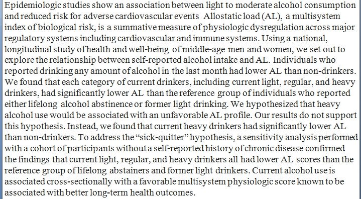 "Alcohol use is associated with a favorable multisystem physiologic score known to be associated with better long-term health outcomes." https://journals.plos.org/plosone/article?id=10.1371/journal.pone.0223168 …pic.twitter.com/t5TNrWpqP5