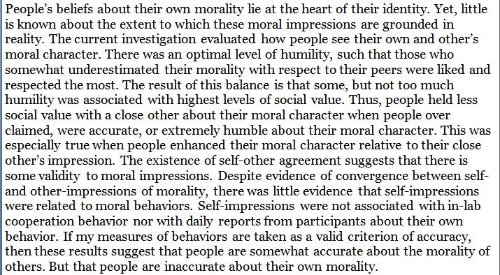 For whoever exalts himself will be humbled: People disliked those who overestimated their morality; those who somewhat underestimated their morality with respect to others were liked the most. https://tspace.library.utoronto.ca/bitstream/1807/97321/3/Barranti_Maxwell_201911_PhD_thesis.pdf …pic.twitter.com/jjQKP5FUTr