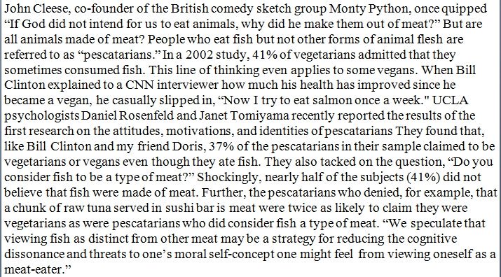 I once ate fish in a restaurant with someone who said she was vegetarian while she was eating fish.