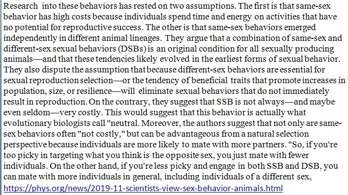 Widely touted paper, arguing that homosexual behaviors were part of the original, ancestral condition in animals, misses the real evolutionary puzzle: Exclusive homosexuality, which is uniquely human and absent among animals in the wild. https://www.nature.com/articles/s41559-019-1019-7 …pic.twitter.com/HBttDBKOMy