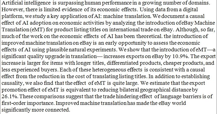 The quality of machine translation has improved in recent years to such an extent that this form of artificial intelligence already generates substantial economic added value. (Translated from German with http://www.DeepL.com ) https://pubsonline.informs.org/doi/abs/10.1287/mnsc.2019.3388 …pic.twitter.com/ps3y6RUtai