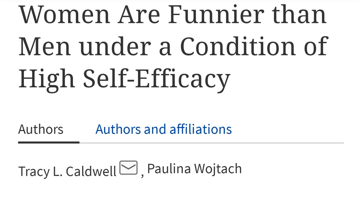 Or men're at least as funny as women after they received a put-down to their "humor self-efficacy". Take this data as evidence that calling men unfunny is only a way to train them to be even more funnier in accordance with traditional gender roles not allowing real male emotion.